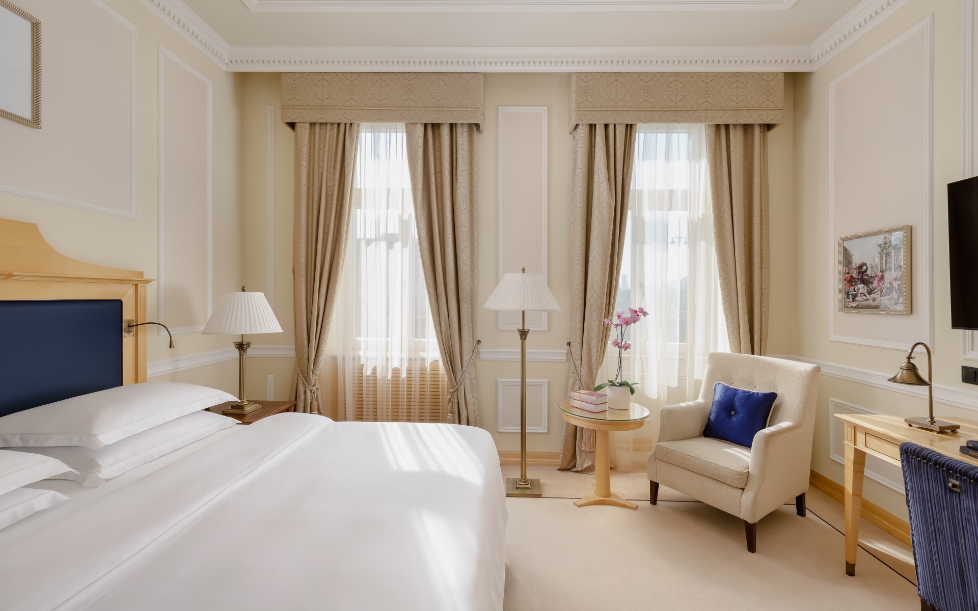 Комментарий экспертаОтель исторический, но ремонт выполнен на хорошем уровне — везде аккуратно и чисто. Площадка предлагает стандартный набор инфраструктуры для проведения конференций. Залы выглядят скорее классически, чем современно, что соответствует характеру отеля и его интерьерам. Видно, что команда умеет работать с мероприятиями разного масштаба. В ресторане «Кранцлер» очень приятное обслуживание: еда вкусная, продукты свежие, подача аккуратная и красивая. Посадочных мест не очень много, но ресторан и не используется для шведского стола.