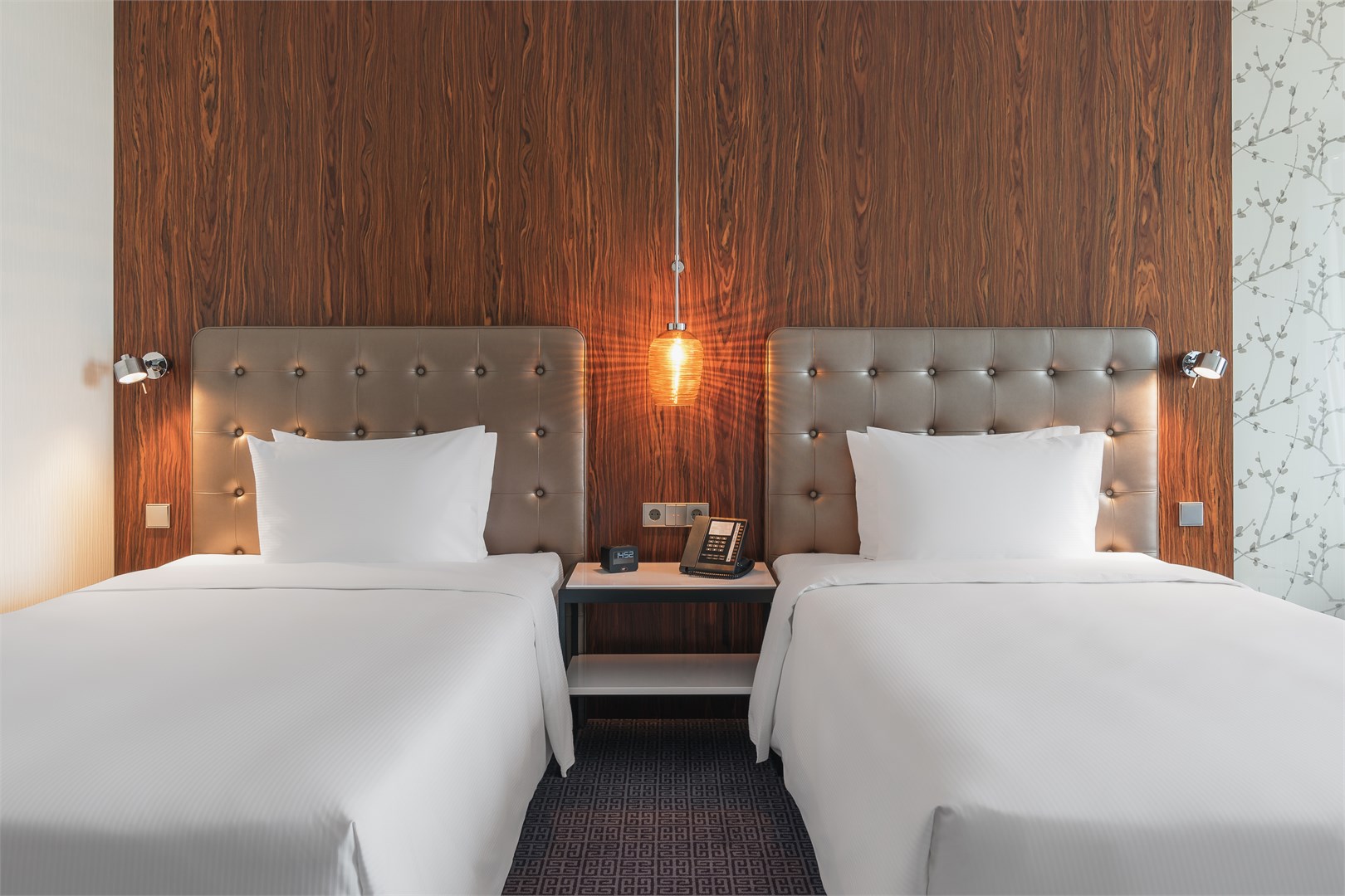 В отеле 234 номера различных категорий с панорамными окнами. Эксперт отмечает, что номера выглядят свежими и оснащены всем необходимым: кофейная и чайная станции, халат, тапочки, вода, гладильные принадлежности.