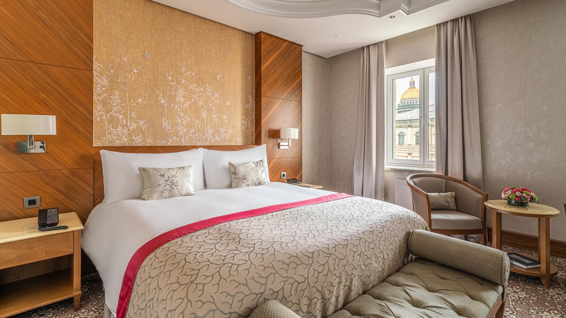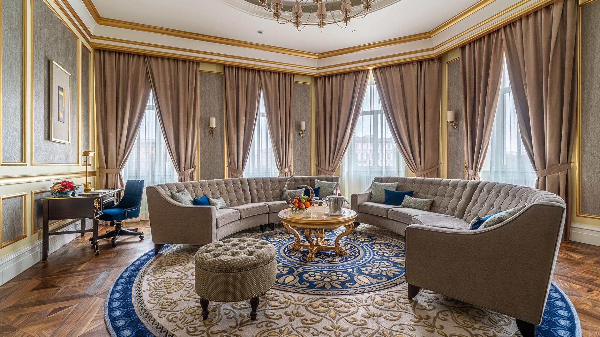Возможности конференц-зала “Пушкин” позволяют провести деловое мероприятие на 100 человек при рассадке «театр». При рассадке «класс» оптимальная вместимость – 32 парты по два человека, в формате фуршета – 80 человек. Зал имеет отдельный вход со стороны набережной реки Мойки, доступ к которому предоставляется за дополнительную плату. Банкет можно провести в ресторане The Lounge площадью 852 кв.м