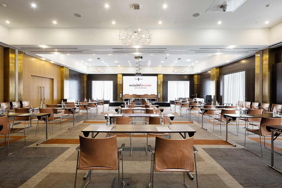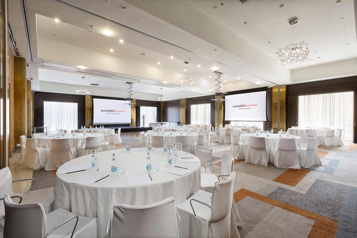 альный зал отеля подходит для проведения как масштабных деловых конференций и тренингов, так и для неформальных мероприятий — свадеб и гала-ужинов.